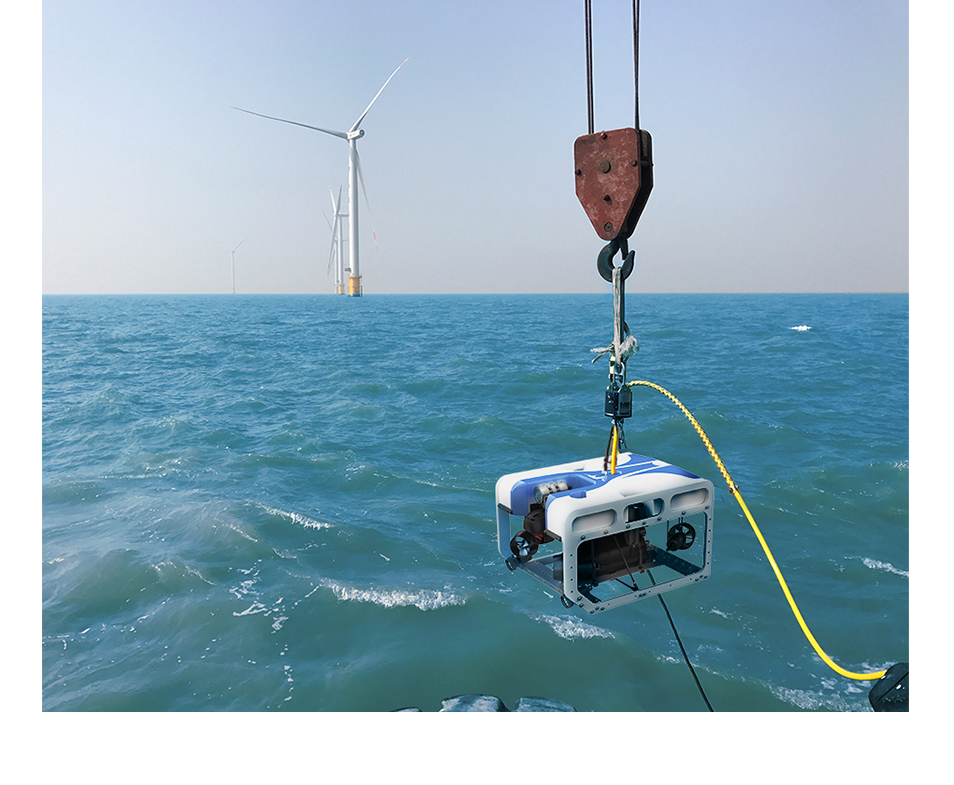 海上風電場多設立在離岸區域,易受臺風、地震、海水腐蝕等環(huán)境的影響,需定期進行運維檢測,水下機器人設備能對海上風電場進行水下樁基構件運維、水下結構腐蝕處理、海纜及附屬設施檢測等,降低海上風力發(fā)電組的運維成本,提升效益。